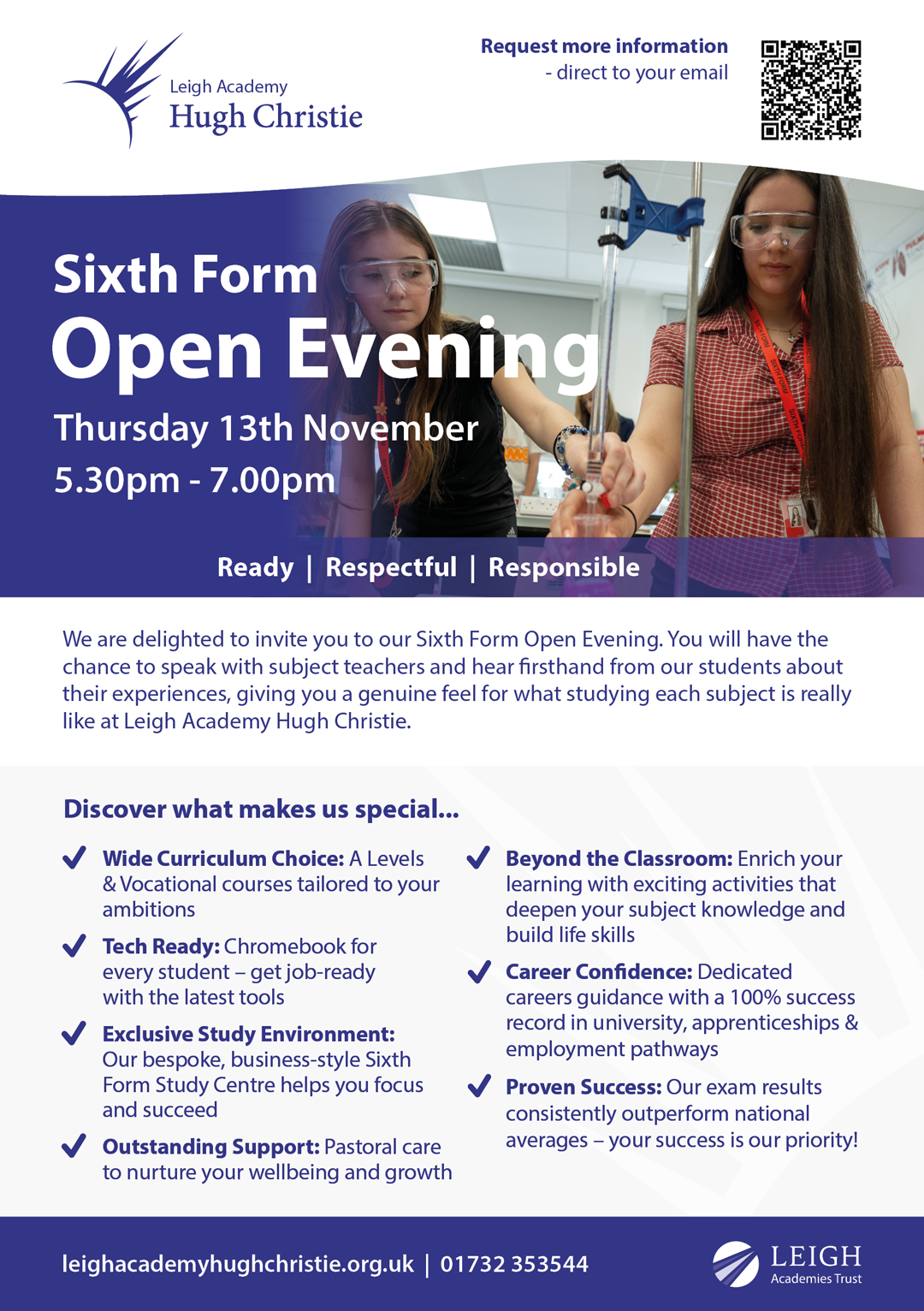 Please direct all Sixth Form queries to sixthform@hughchristie.latrust.org.uk and the team will be able to support you.